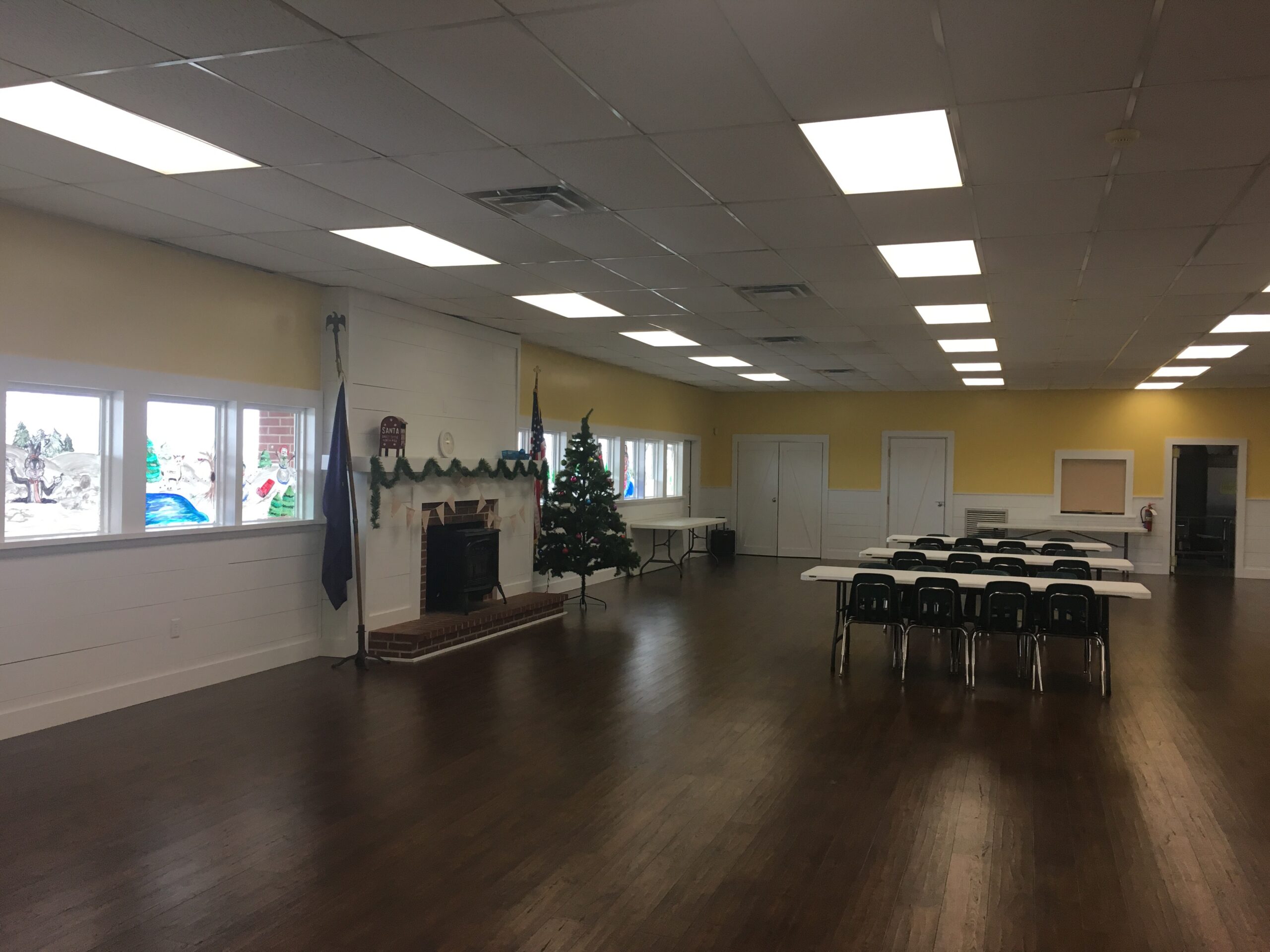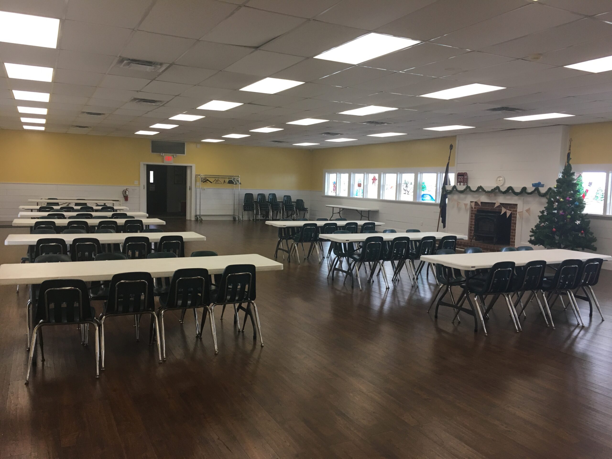 Our upper level is available for rentals. It contains a spacious all-purpose room and full kitchen. The room holds approximately 200 people. It is great for anniversary parties, family holiday get-togethers, birthday parties, graduations, meetings, etc. Tables and chairs are included in the rental price of $400.00 for 5 hours and $50.00 hour for each additional hour. Security deposit of $100 required at time of contract signing.