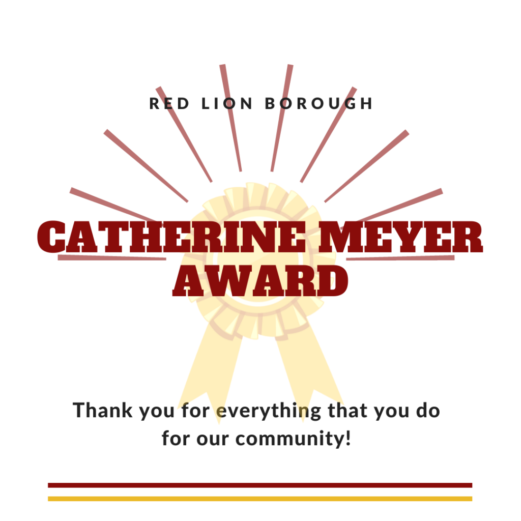 The Catherine Meyer Award is given to one person each year at the Red Lion Borough Appreciation Night in November.